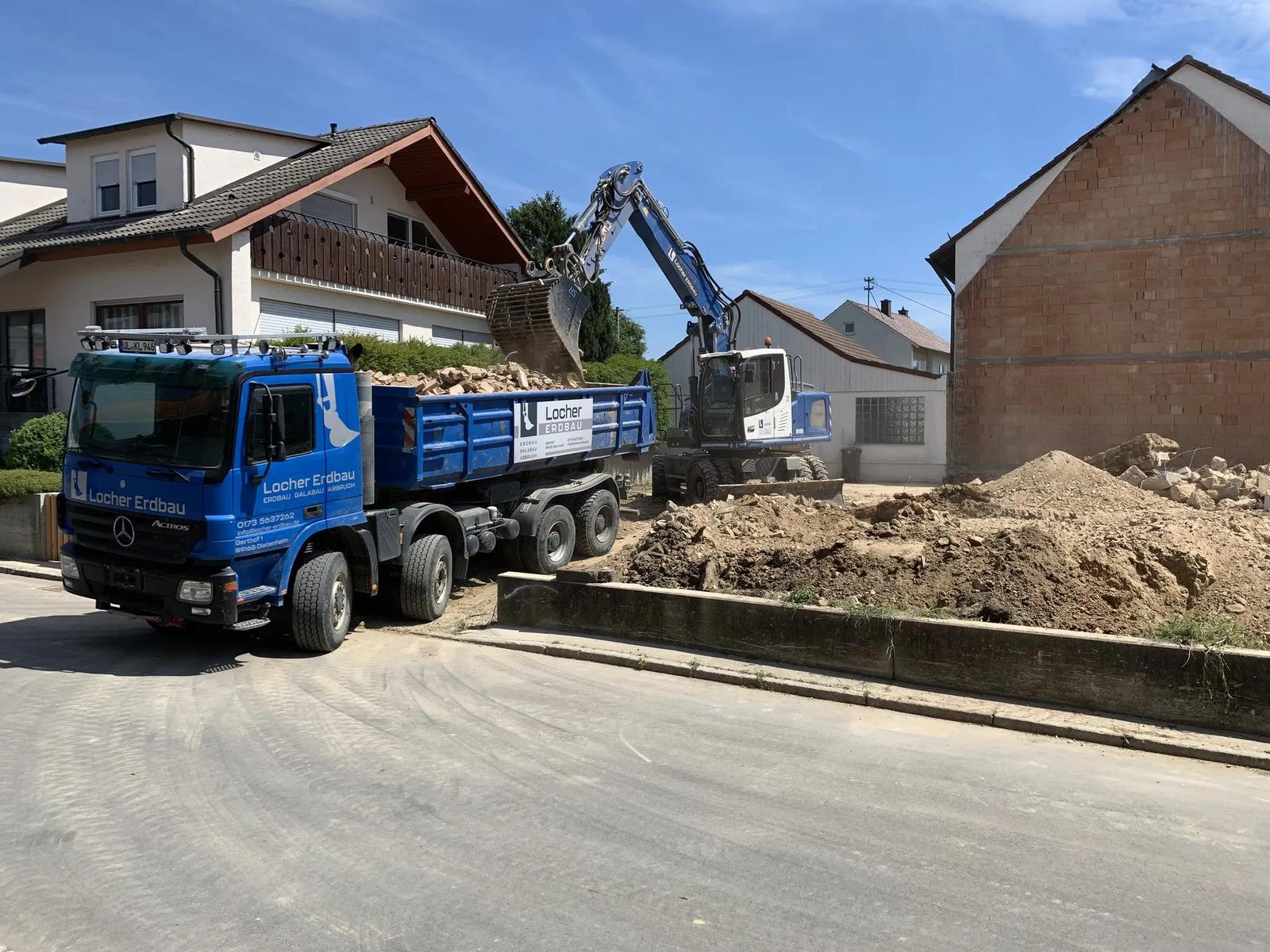Brechen von Bauschutt vor Ort oder Abtransport zur Deponie. Übergabe eines sauberen Grundstücks.