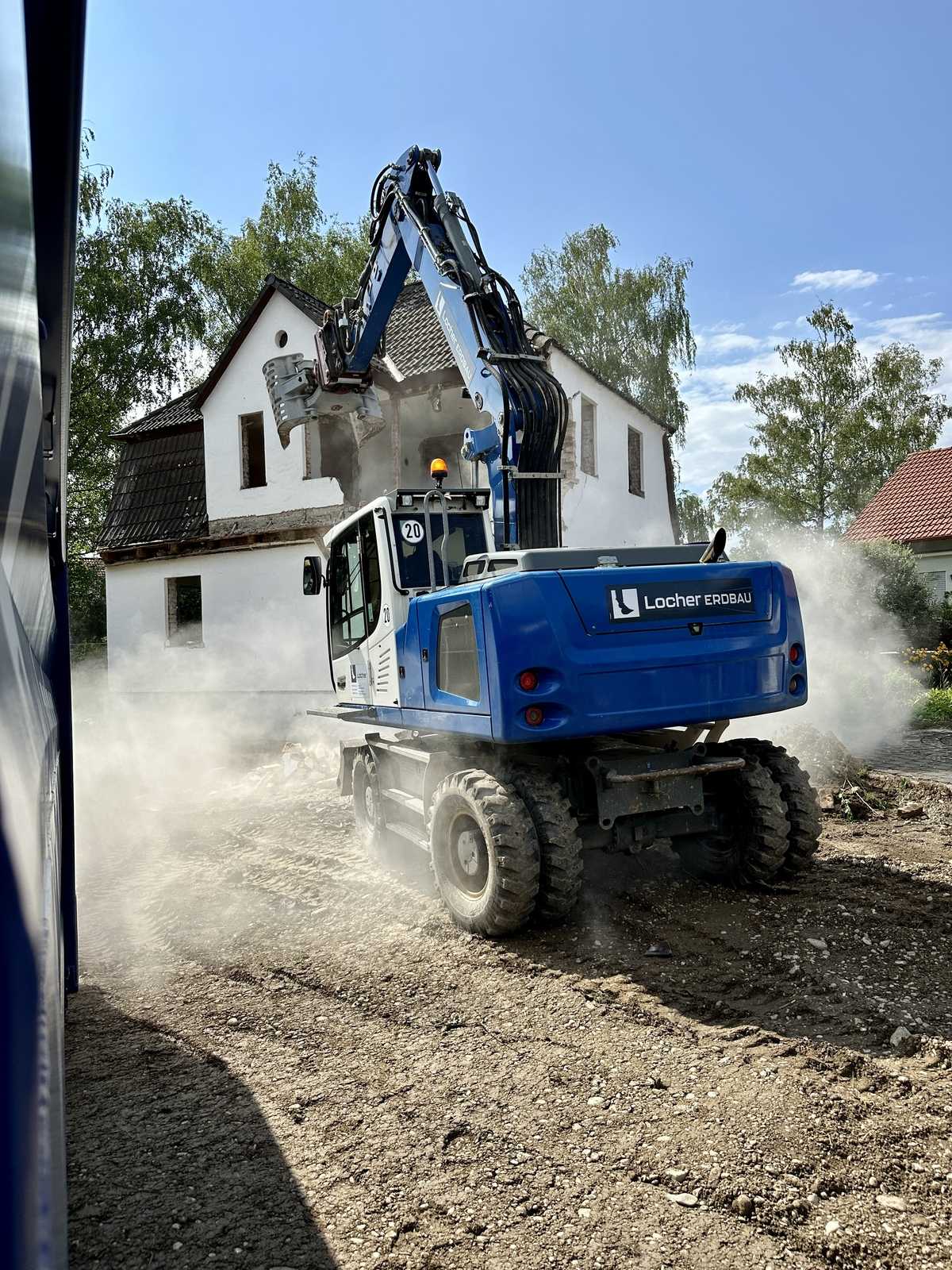 Maschineller Abbruch der Gebäudesubstanz mit modernster Baggertechnik.